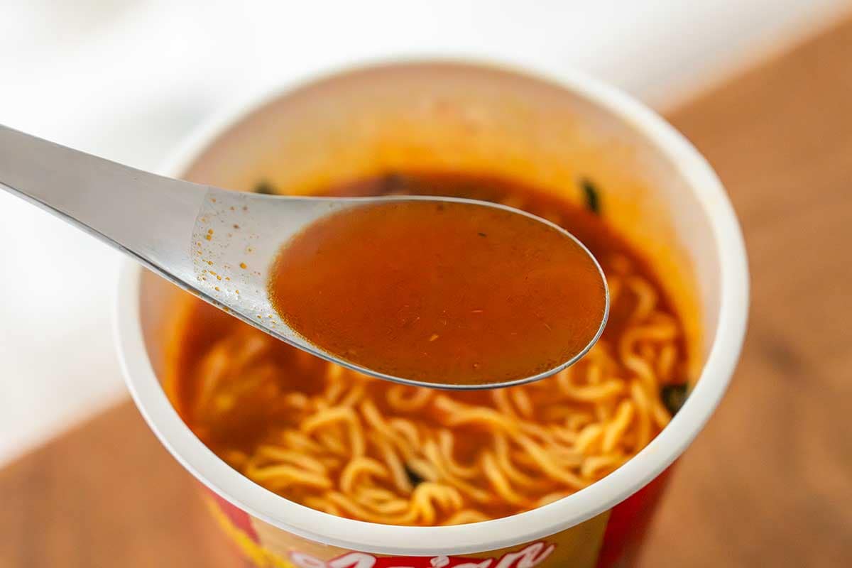 調理方法は、カップの中にお湯を注いで4分待ち、仕上げに「特製麻辣調味油」を加えて、よくかき混ぜるだけでOKです。