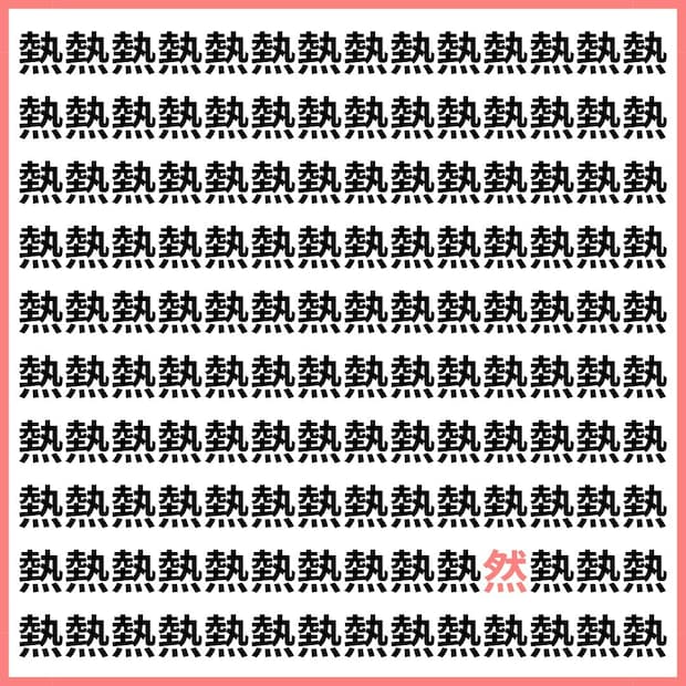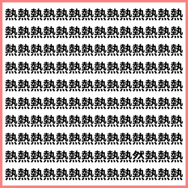 たくさんの「熱」の中に、1文字だけ違う漢字が混ざっています。