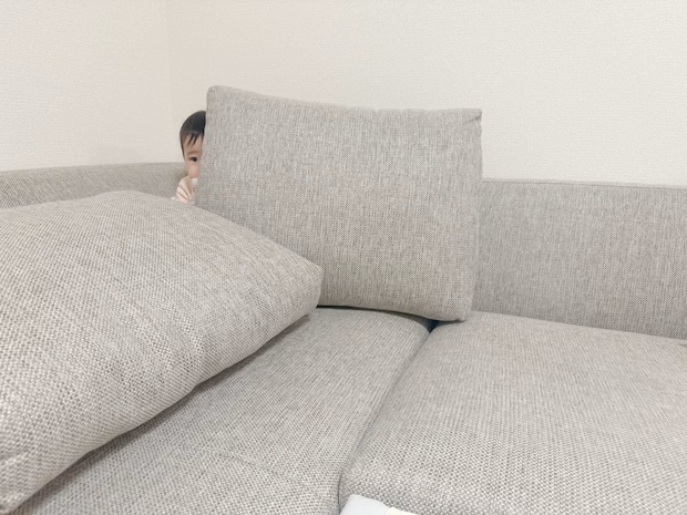 ご紹介するのは、あも🐰☺︎︎︎︎8m(@umero_x)さんの投稿したお写真です。子育ては大変なこともありますが、特に子どもが小さいうちは何をしてもかわいいもの。あもさんは、生後8か月の娘さんがクッションに半分隠れ、まるでかくれんぼをしているかのような場面に遭遇しました。クッションからチラッとのぞく、小さな娘さんに思わずメロメロです。