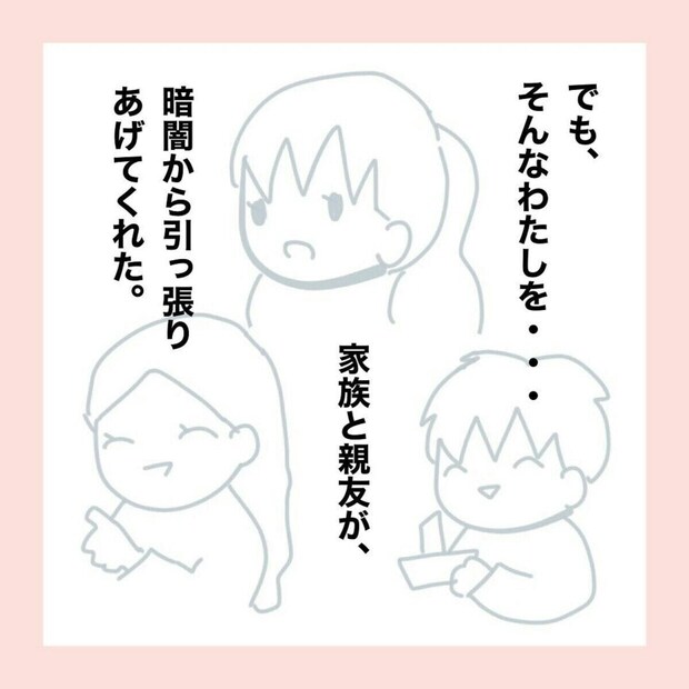 がんの告知を受け、真っ暗闇に落ちてしまったように感じていたサクラさん。ですが、家族と親友のおかげで、「絶対に生きる」という強い意思を持ち続けることができました。ツラい副作用に耐えることができたのも、「絶対に治す」という思いがあったからこそでした。