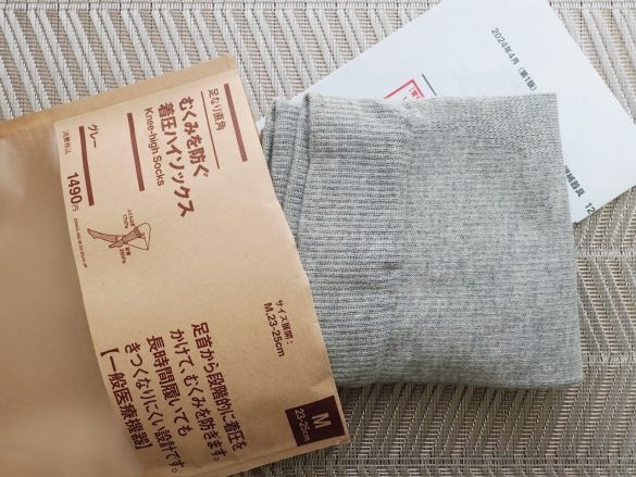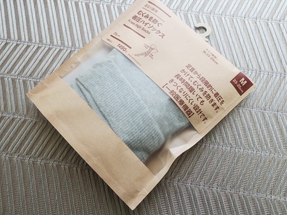 無印良品の「【足なり直角】むくみを防ぐ 着圧ハイソックス」は、足首から段階的に着圧をかけてむくみを防ぐ―という商品。