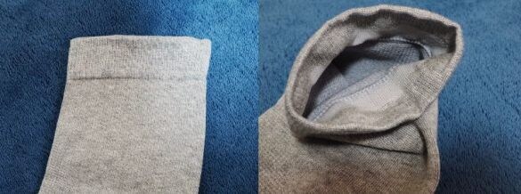 口ゴム部は、ふくらはぎ周りの延長といった感じで割と大きく開いています。ゴムには伸縮性があって、見た目ほど硬くありません。
