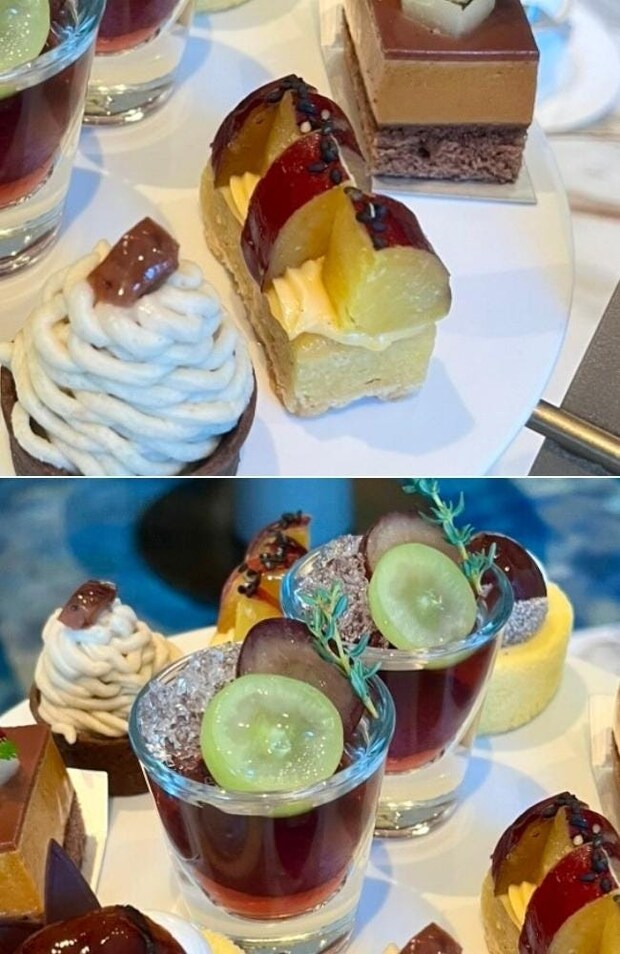 もう1つのお気に入りは「葡萄ジュレ(写真下)」。上に乗っている2種類のぶどうのおいしさはもちろんのこと、ジュレ自体がまるでぶどうを食べているかのような、濃厚かつみずみずしい味で驚き! 見た目よりも食べ応えがある1品です。