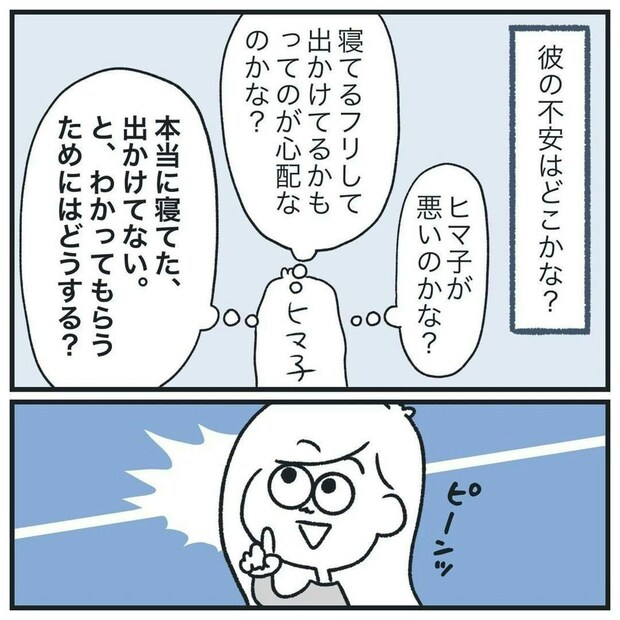 かと言って、浮気を疑われるのは悲しいですね。そこで、ヒマ子さんは、とんでもないアイデアを提案します。