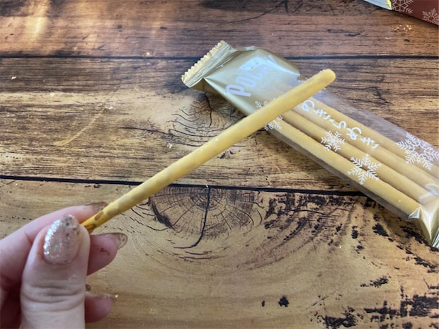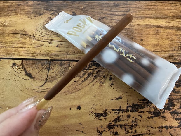 1箱に1袋6本入りが2袋入っています。ココアパウダーがかかった生チョコレートのようなポッキー。甘いけれど、ちょっぴりビターな大人の味わいで、リッチな気分も堪能できます。正直、これは子どもに取られたくないので隠しておきたいかも……。