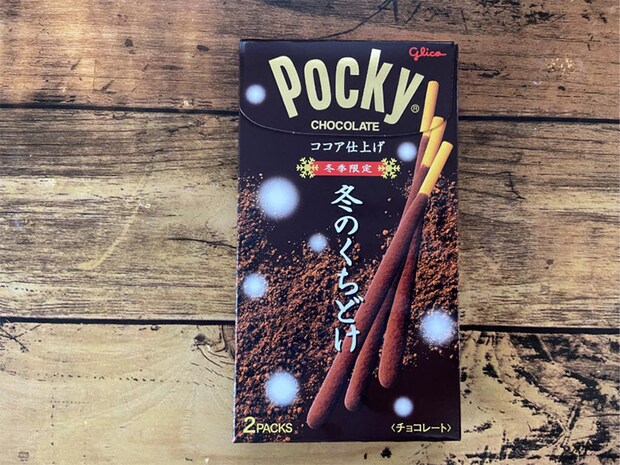 「冬のくちどけ」は、くちどけのよいチョコレートをたっぷりとコーティングし、ココアパウダーで贅沢に仕上げたポッキー。毎年大人気の冬の定番ポッキーです。