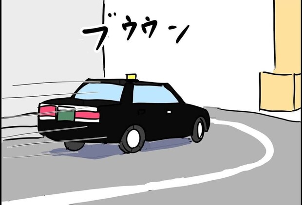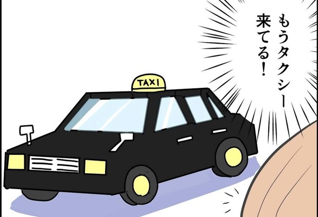 すでに到着していたタクシーに乗り込む佳奈さん。きちんと準備していたおかげでスムーズに事が運んでいます。これならすぐに出発できそうですね。