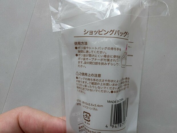 エコバックと一緒にカバンに入れるのをおすすめしたいのが、こちらのショッピングバッググリップです。
