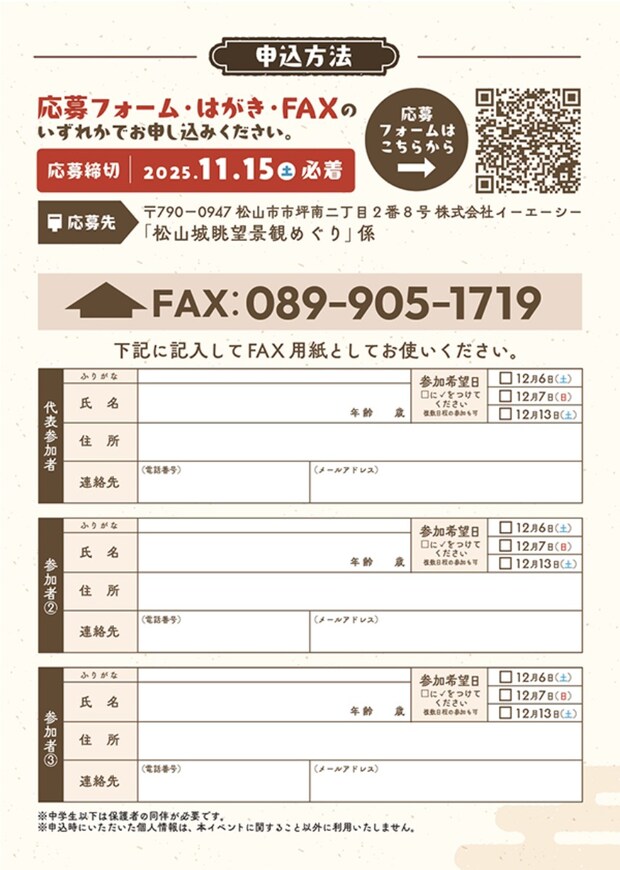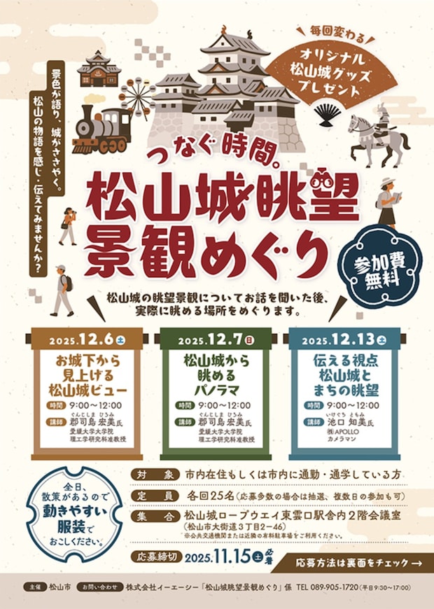 - お問い合わせ:株式会社イーエーシー 「松山城眺望景観めぐり」係