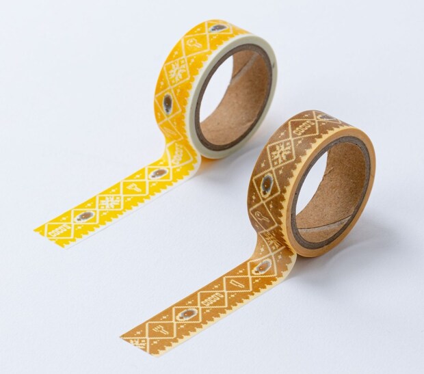 ニットバッグと同じ柄のマスキングテープ。ココスカラーのイエローと、ニットバッグと同じブラウンの2個セット。