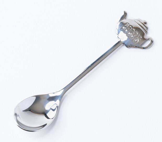 ココスのロゴがあしらわれた、ティーポットデザインの持ちやすい柄が特徴的なティースプーン。