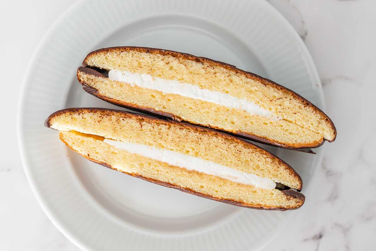 次は断面をチェック。スポンジ生地のあいだに真っ白なバニラクリームがサンドされています。