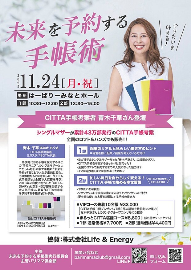 - お問い合わせ:未来を予約する手帳術実行委員会(主管:バリママ倶楽部)