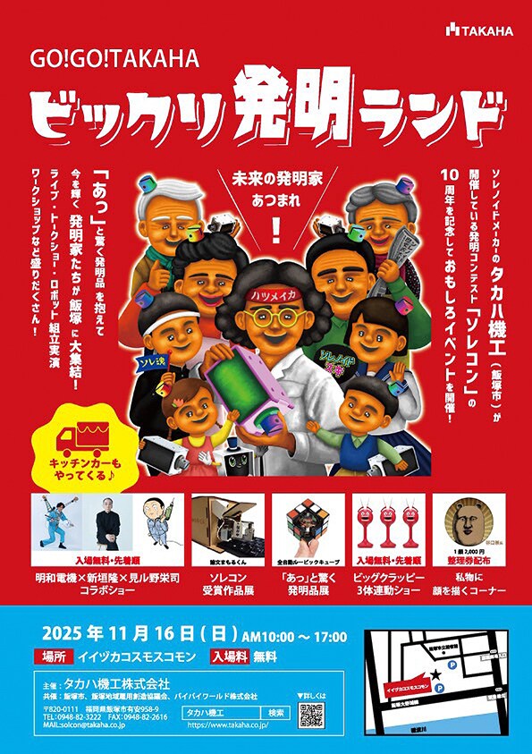 The post 【飯塚】11月16日(日)、イイヅカコスモスコモンで「GO!GO!TAKAHA ビックリ発明ランド」が開催されます! first appeared on 筑豊情報マガジンWING.