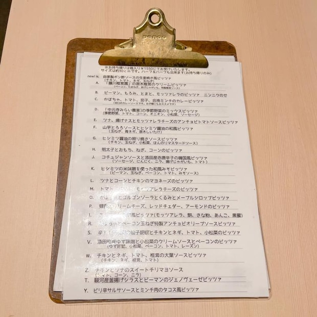 この中からA「藤川椎茸園」の原木椎茸のクリームピッツァと、Bピーマン、もろみ、とまと、モッツァレラのピッツァ ニンニクのせの2種類を用意してもらいました。