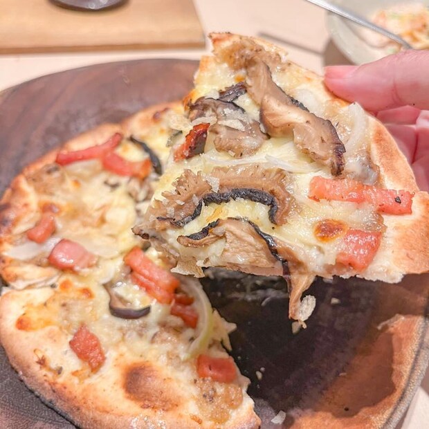 「藤川椎茸園」の原木椎茸のクリームピッツァは、原木椎茸が贅沢にたっぷりのっています。