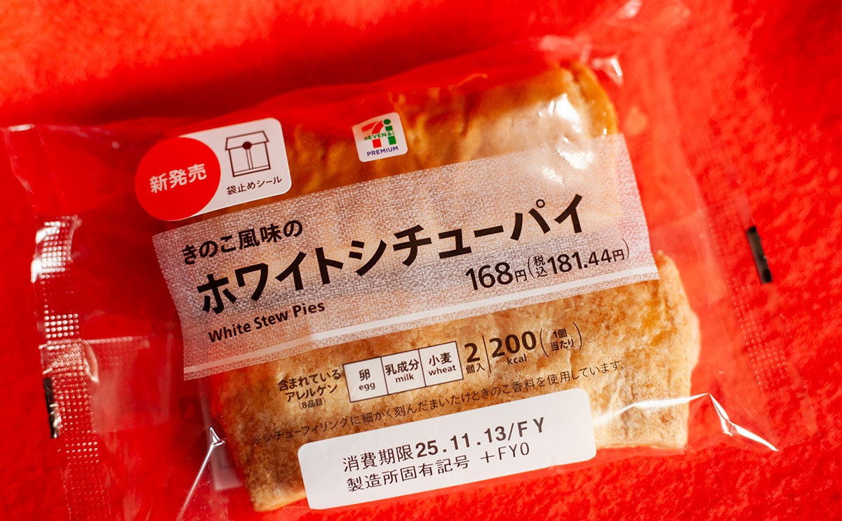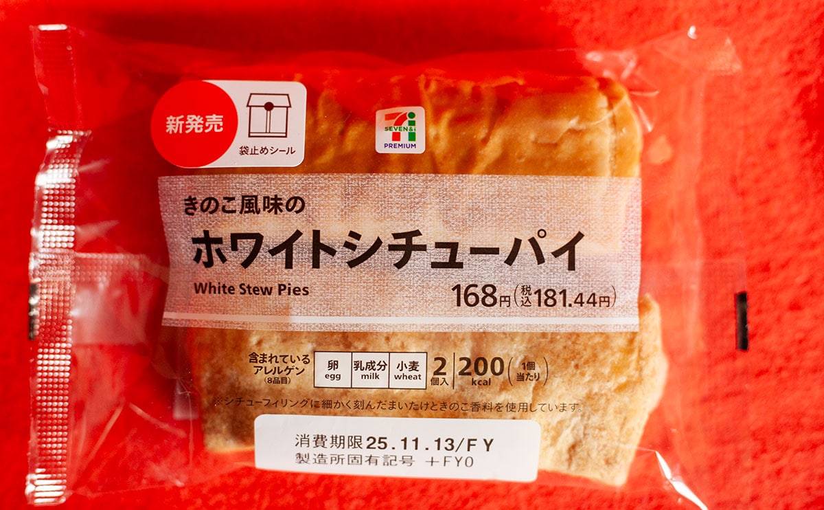 2025年11月11日(火)、セブン-イレブンが発売したのが、「ホワイトシチューパイ 2個入」(税込181円)という新商品です。