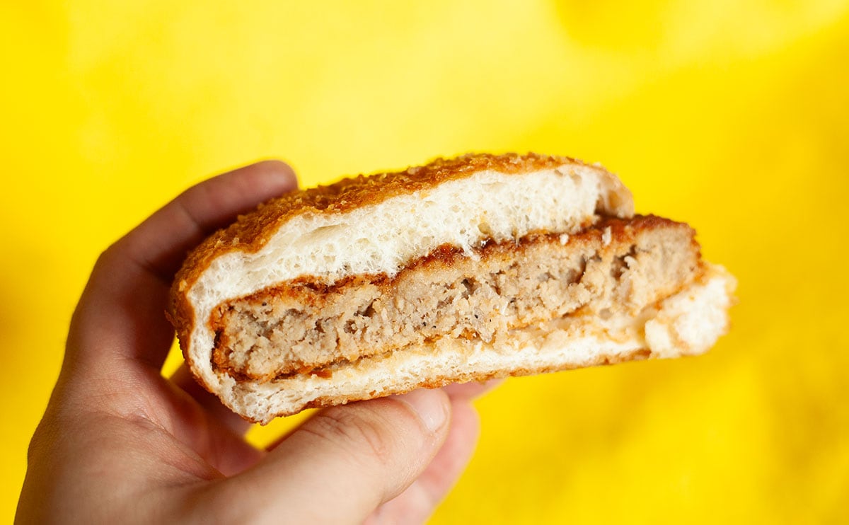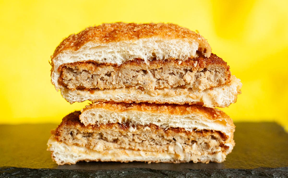 これまでも「ソーセージピザ」や「ベーコンピザ」といった商品が発売されてきた「どかっと満足パン」シリーズ。ボリューミーで満足感があるのが特長ですが、今回はメンチカツ! 炙り醬油風ソースで味付けされていて、パンは揚げてあるようですね。