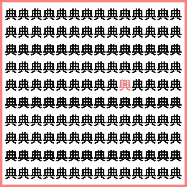 たくさんの「典」の中に、1文字だけ違う漢字が混ざっています。