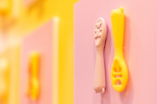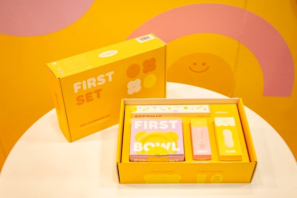 「reliev」のテーブルウェアは、赤ちゃんが食事を通じて“自分でできた”を体験できるよう設計されている。柔らかな素材と丸みを帯びたデザインで、手に取りやすく安全だ。
