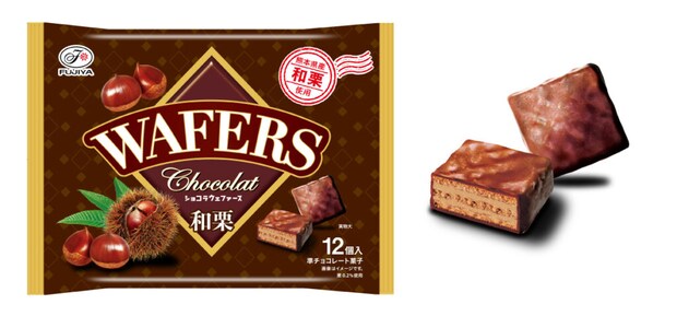 もう一つの新商品は、秋の訪れを告げる「ショコラウェファース(和栗)」です。チョコレートと相性の良い栗を組み合わせ、5層仕立てで仕上げた贅沢な一口菓子。熊本県産の和栗パウダーを使用したクリームをウェファースで挟み、さらにチョコレートでコーティングすることで、なめらかさと香ばしさが重なり合う味わいになっています。ひとくちサイズで個包装されているため、オフィスでの休憩や友人へのシェアにも適しています。手軽さと上品さを兼ね備えたこの商品は、秋のティータイムに彩りを加えてくれる存在です。