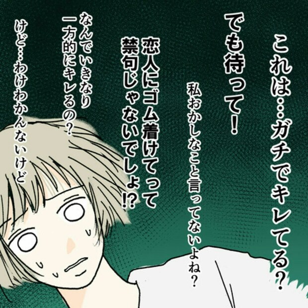 しかし日を追うごとにふつふつと怒りがこみ上げ、最終的にはE原さんに直談判をしに行く程度までは気持ちが回復しました。セックスの際、コンドームの装着を拒むのはお互いにとってリスクが高い行為です。一方が装着を願っているのにその気持ちをないがしろにするのは性的DVにもなりかねません。