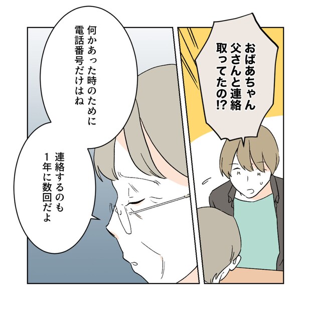 ショウタの父方のおばあちゃんに結婚の挨拶に行くと、おばあちゃんがショウタに「お父さんに報告はするかい?」と聞きました。ずっとお父さんの所在も連絡先も知らなかったショウタはおばあちゃんの言葉に驚いていました。
