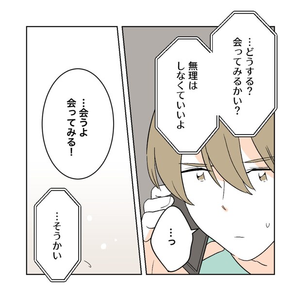 記憶もおぼろげになるほど長い間会っていなかったお父さんとの再会。嬉しさもあるのかもしれませんが、怖い気持ちのほうが大きいかもしれませんね。マミさんが一緒に行ってくれるのはとても心強いでしょうね。