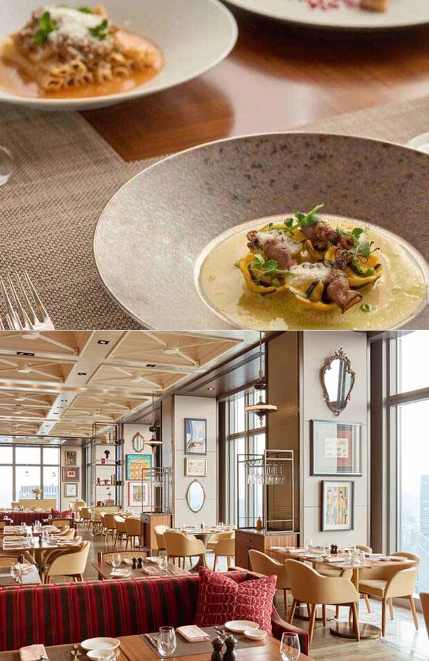 三越前駅直結、日本橋三井タワー内に位置する最高級のラグジュアリーホテル「マンダリン オリエンタル 東京」。ホテル最上階の38階にある「イタリアンダイニング ケシキ」では、天井まで広がる大きな窓が配置され、都心の高層ビル群、遠くには富士山まで見渡すことができる。