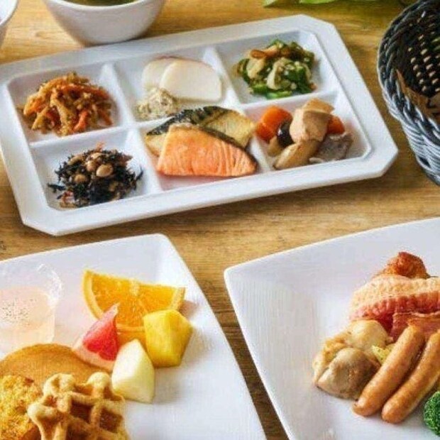 洋食メニューには、風味豊かな「チキンの香草焼き」をはじめ、バリエーション豊かな卵料理にフレンチトースト、焼きたてパンも用意。和食メニューには、十五穀米、焼き魚や肉じゃがのほか、玉子焼きや佃煮など優しい味わいのお惣菜各種がラインナップ。フルーツやサラダ、ヨーグルトといったヘルシーメニューも充実しているのもうれしい。