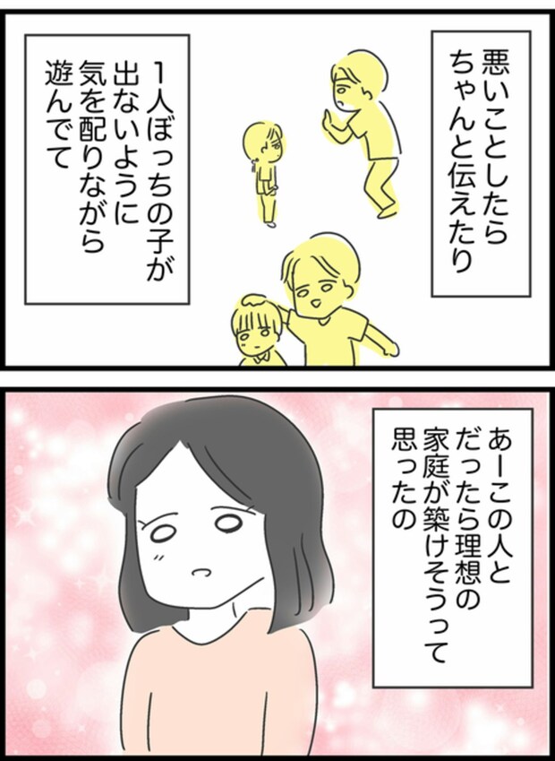 子どもが生まれる前に参加したしょうたの会社のBBQで、子どもたちに優しく接するしょうたを見て「この人とだったら理想の家庭が築けそう」と思ったというようこ。「だからできないんじゃなくて、やらないだけなんだよね」と言い…。
