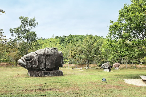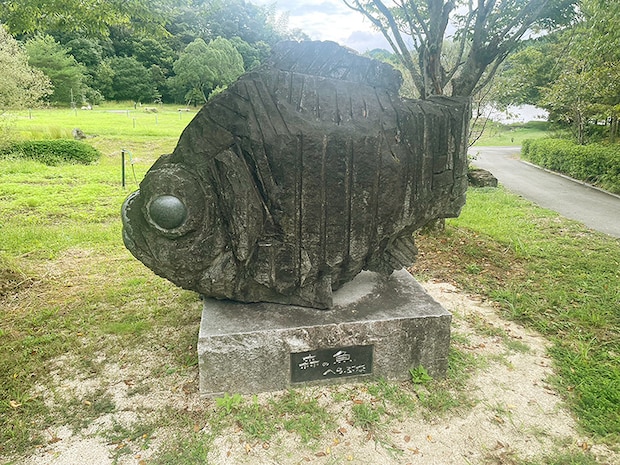 地元出身の彫刻家である藤部吉人さんの作品もあり、「森の魚」とよばれる巨大な石の彫刻が並ぶびっくりスポットも!