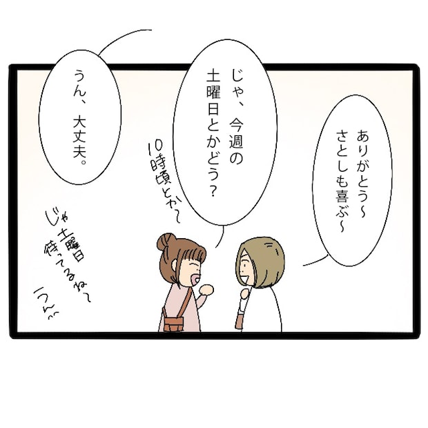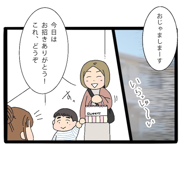 そして約束の土曜日。「おじゃましまーす、今日はお招きありがとう!これどうぞ」デパートでしか買えないようなお菓子の袋を持って、さとしくんママが我が家にやってきました。