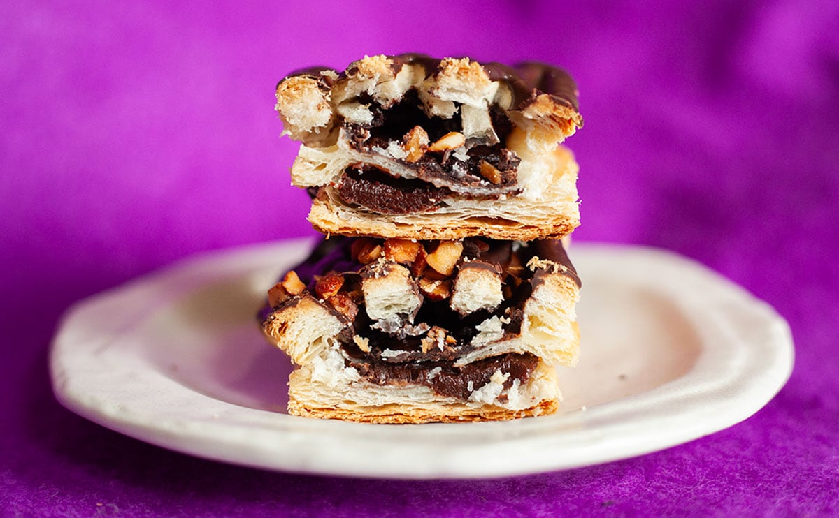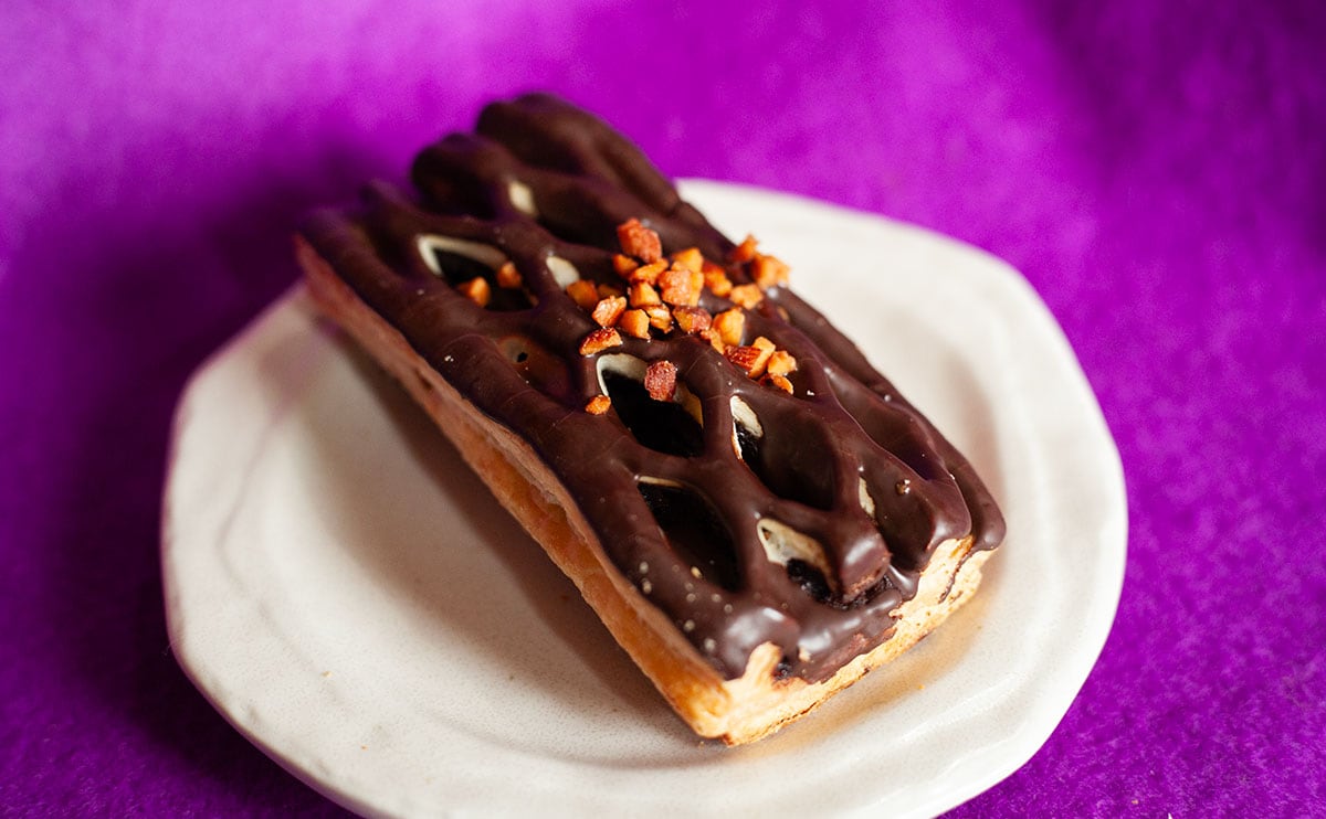 食べる場所によってチョコの濃さが変わるのも◎。個人的には、中に隠れたチョコクリームがお気に入りです。濃厚で、しっかり甘いのですが、その分パイ生地などでバランスが取れているので、文句なしのおいしさです!