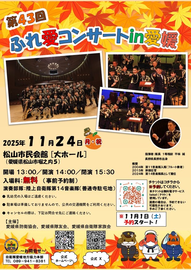 11月24日(月・休)に、陸上自衛隊第14音楽隊が香川県の善通寺駐屯地からやってきます♪