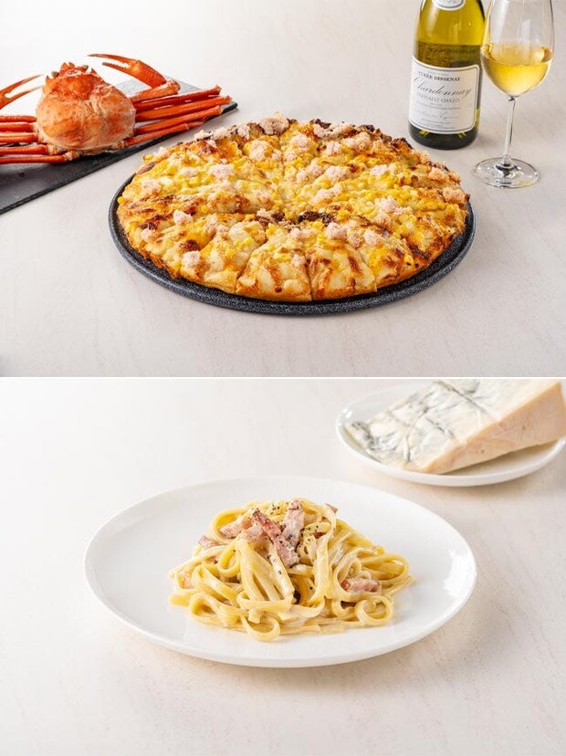 冬の新メニューには、「紅ズワイガニのクリームコーンマヨピザ」を用意。紅ズワイガニの甘みとコーンの優しい風味が、クリーミーなソースと好バランス。ついもう一枚食べたくなるような、とろけるような口当たり。