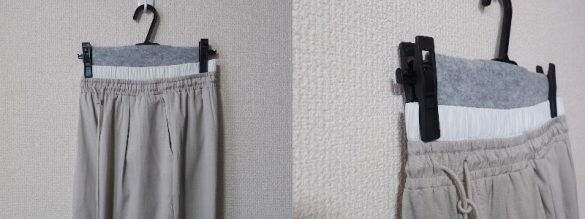 汗がダイレクトに染みこむパンツの内側から消臭・除湿ができるのは、嬉しいですよね。半分にたたんだシートは太ももの上半分あたりまで届きますが、長さを出したい場合はジャケットの時と同様に上部の穴をハンガー本体に通して使ってもいいかもしれません。夜のうちにかけておいたジャケットを翌朝羽織ってみると、思っていた以上にカラッとしていて不快感が大幅減。汗をよくかく筆者はニオイも心配…なので、同居人にも確認してもらった結果……臭わない! とのこと。ホッ……。