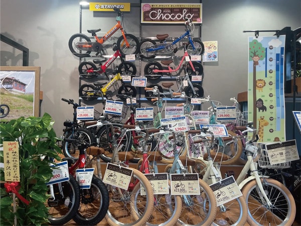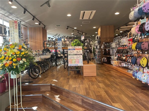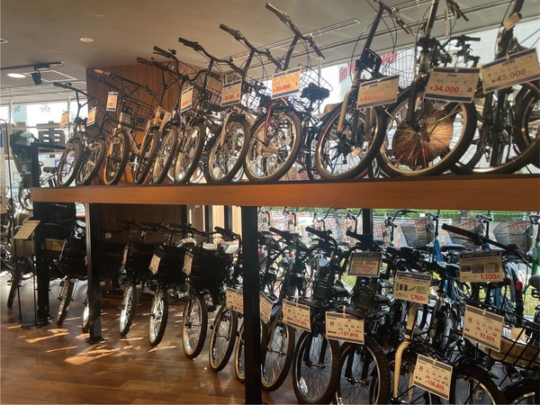 特に電動アシスト自転車は地域屈指の品揃えとなっており、買い物におすすめのカゴの大きなタイプから、通勤通学にも使いやすいスポーツバイク型まで、多様なラインアップを取り扱っている。