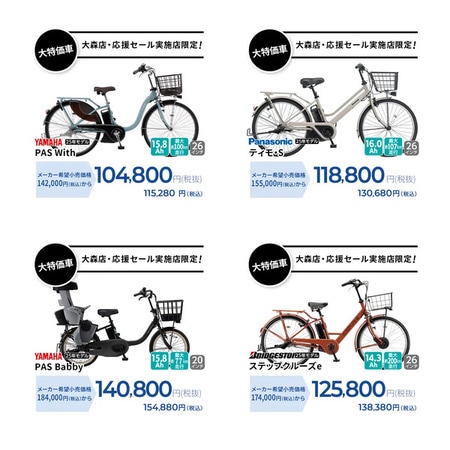 また、「ダイワサイクル 馬込店」では、11月13日(木)までの期間、「ダイワサイクル STYLE 大森店」応援セールを実施中。