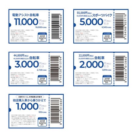 他にも、「ダイワサイクル STYLE 大森店」と応援セール実施店にて使用できる、お得なクーポンも用意されている。