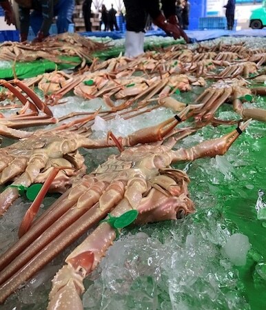 新鮮な魚介料理を提供する京都旅館「天橋立荘」は、活松葉ガニのフルコース料理の受付を開始。2026年3月中旬まで受け付けている。