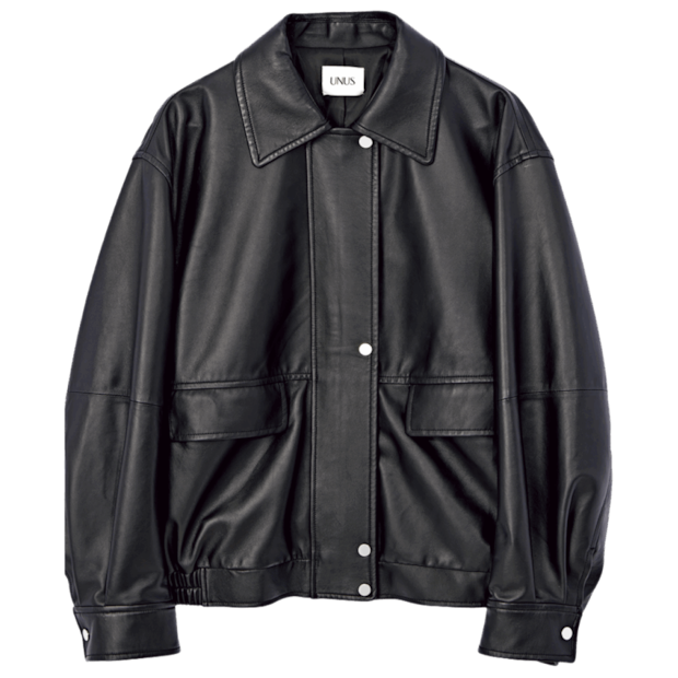 「マニッシュなディテールが特徴のレザーブルゾン。柔らかなラムレザーを使用しているので、着るほどにからだになじみ、トレンドと関係なく、長く愛用していただけると思います」UNUS PR・水谷優芽さん