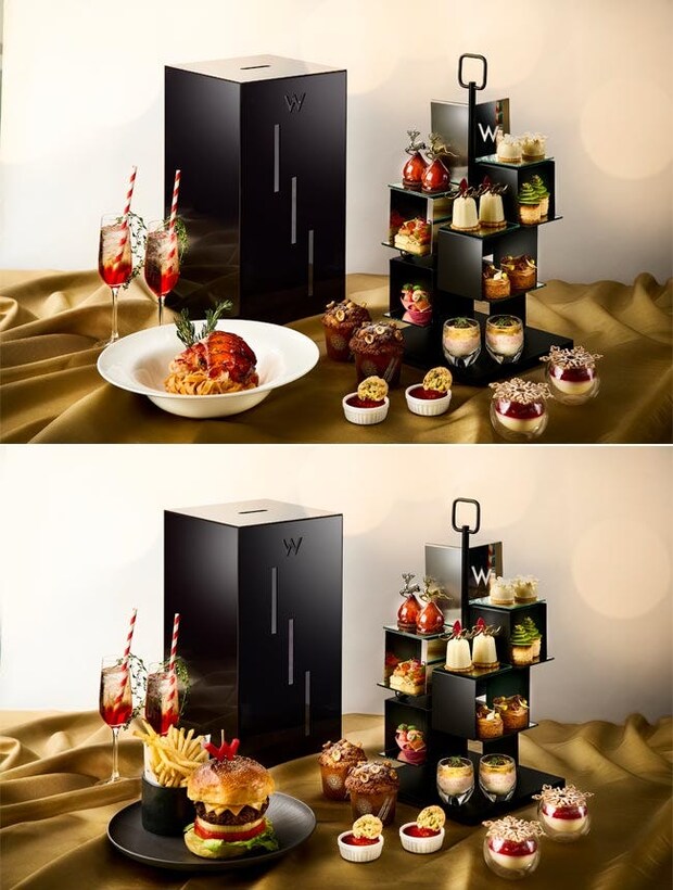 W大阪3階「LIVING ROOM」で開催される、フェスティブシーズン限定の「Holy Night Afternoon Tea」も要チェック。オマール海老クリームパスタや神戸ビーフバーガー、W大阪オリジナルのシャンパーニュやボクサーパンツなど、心躍るメニューやアイテムがセットになった豪華アフタヌーンティー。さまざまなシーンに合わせて、ホリデー気分を満喫する優雅なひとときを過ごして。