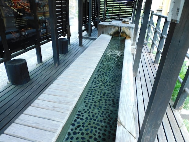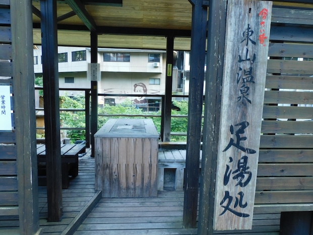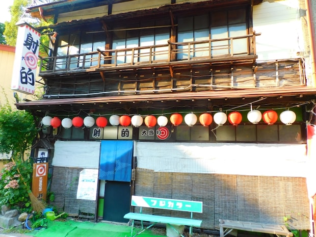 温泉街を流れる川沿いに温泉宿や地元の名物を提供する飲食店、射的場や足湯などがあり昔なつかしい温泉街の風情を感じることができます。