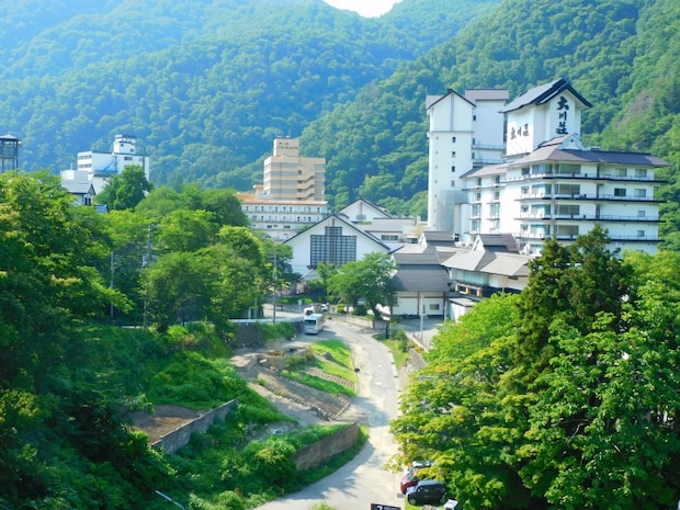 温泉街を流れる大川沿って温泉宿が軒を連ねる、約1300年の歴史を持つ温泉地です。