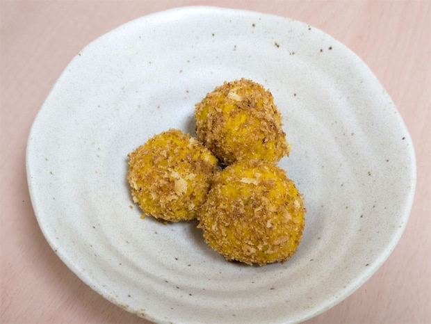 味付けは塩・こしょうのみなので、かぼちゃ本来の甘さが引き立っています。衣はフライパンで炒めただけですが、香ばしくサクサクとした食感。油は少なめなので、胃もたれせずに何個もパクパクと食べられてしまいそうです。