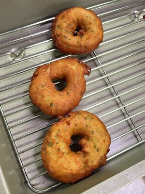 ドーナツ生地は、米粉と豆腐を使いヘルシーに。米粉だけだと油で揚げた時に固くなってしまうため、ふんわりさせるために豆腐を使うのがポイントです。