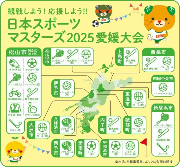 全国から35歳以上のアスリートが集う「日本スポーツマスターズ」が愛媛で初開催。元トップ選手から地域代表までが日本一をかけて熱戦を繰り広げます。愛媛で迫力あるハイレベルな試合を観戦できる絶好の機会です。