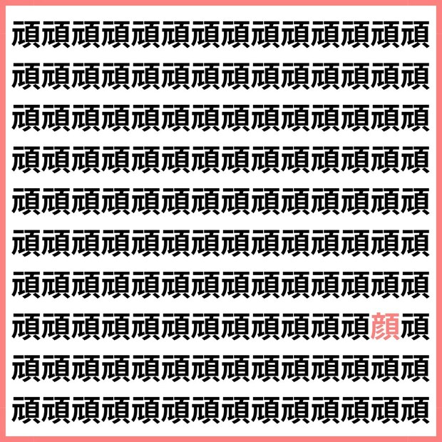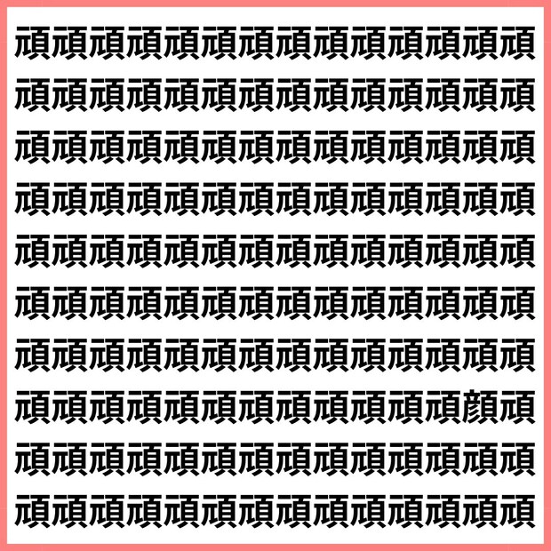 たくさんの「頑」の中に、1文字だけ違う漢字が混ざっています。