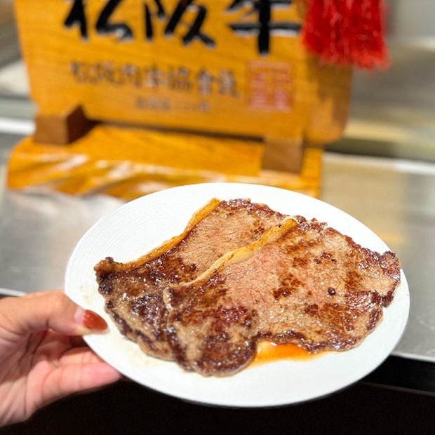 お肉のお供に「松阪牛のガーリックピラフ」を持ってきました。ガーリックの香り、旨みを吸い込んだご飯、そしてごろごろと入ったお肉…、あまりのおいしさにあっという間に完食してしまいました。